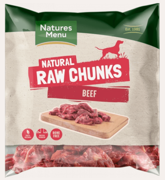 The ultimate chewing meat. Our delicious raw beef chunks are packed full of natural nutrients and can be served as a tasty snack or as the meat component in homemade raw meals. Bone free. Suitable for dogs fed a raw diet over 10 weeks of age. Pack size 1kg.