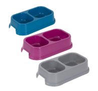 World Of Pets Plastic Double Pet Bowl 250ml Assorted Colours